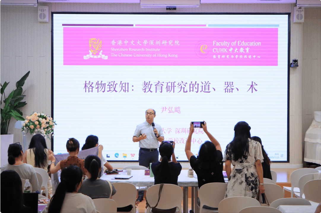 Lecture "Investigating Things to Attain Knowledge: The Dao(道), Qi(器), and Shu(術) of Educational Research." Professor Yin Hongbiao delivered a profound lecture titled "Investigating Things to Attain Knowledge: The Dao, Qi, and Shu of Educational Research." Drawing on The Great Learning from the Book of Rites, he delved into the dialectical relationship between principles, tools, and methods, illustrating how "principles shape tools, tools lead to principles, and methods refine understanding." He emphasized that educational research must be rooted in real-world practice, to identify fundamental problems, extracting core concepts from solid evidence, and ultimately using theory to inform and improve practice. He highlighted that the actual value of research lies not only in explaining reality but also in bridging the gap between theory and practice. He urged participants to anchor their inquiries in authentic educational contexts, encouraging a continuous pursuit of innovation through reflective, practice-driven exploration. |